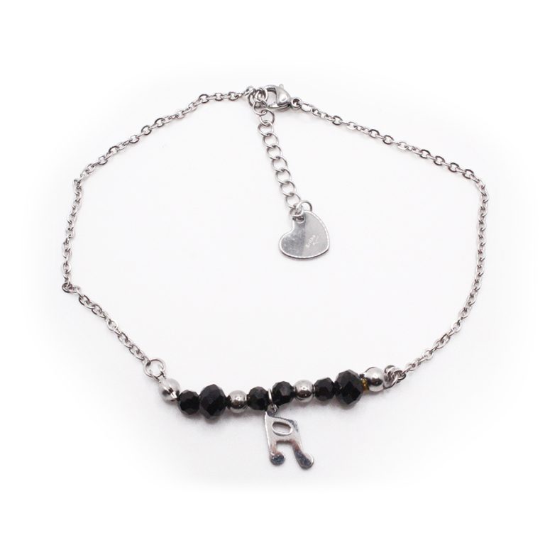 Tobillera de Acero Colgante Plateado Nota Musical, Esfera Negro Medida 26 cm – 8050026