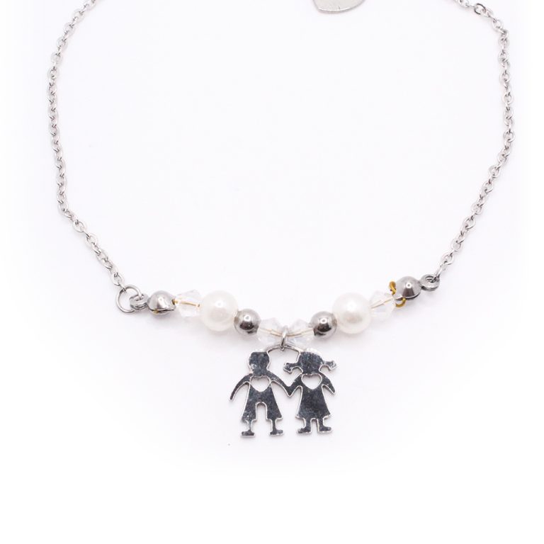 Tobillera de Acero Colgante Plateado Niños, Esfera Blanco Medida 25 cm – 8056525