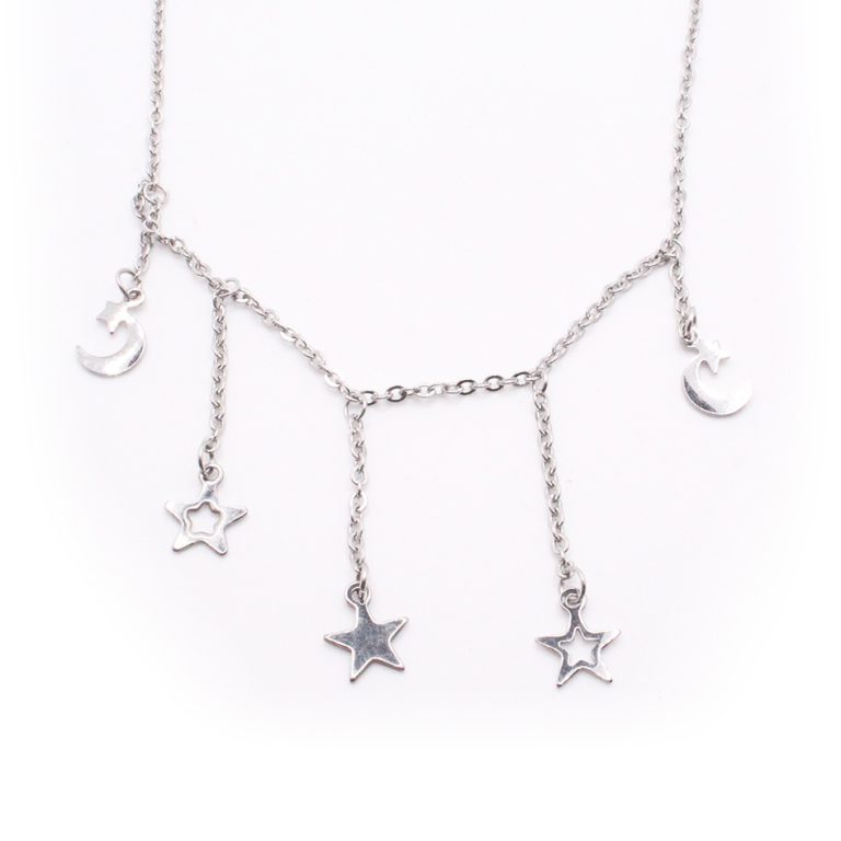 Tobillera de Acero Colgante Plateado Estrella, Luna Medida 25 cm – 8056725