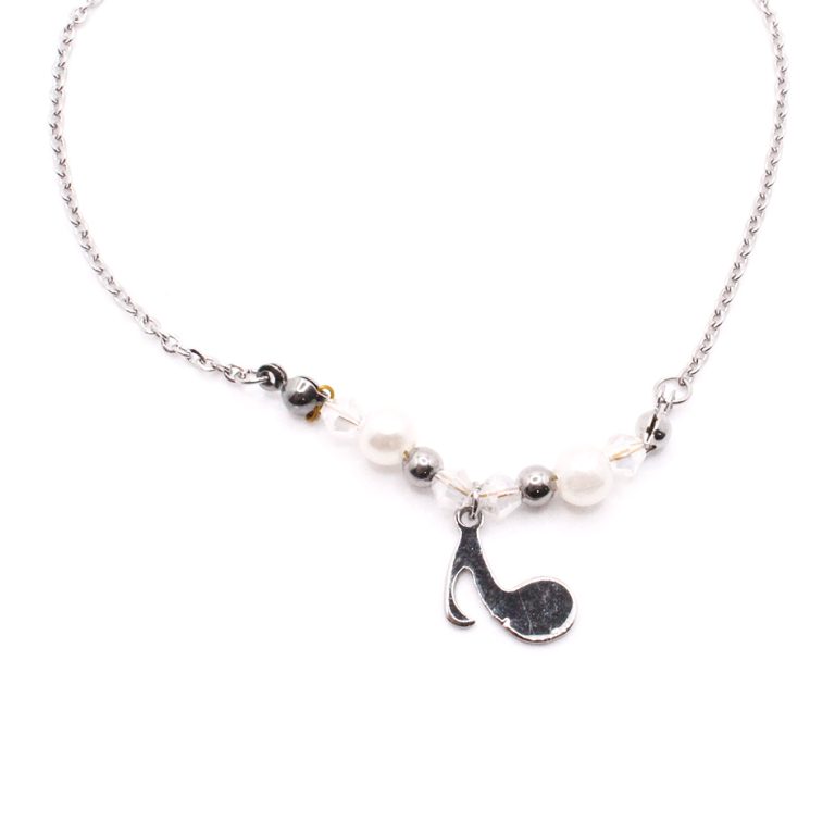 Tobillera de Acero Colgante Plateado Nota Musical, Esfera Blanco Medida 25 cm – 8056825