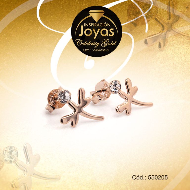 Zarcillo Celebrity Gold Tono Dorado Aleación Circón Trancadero: Mariposa A: 1,3 cm L: 0,3 cm Libélula – 550205
